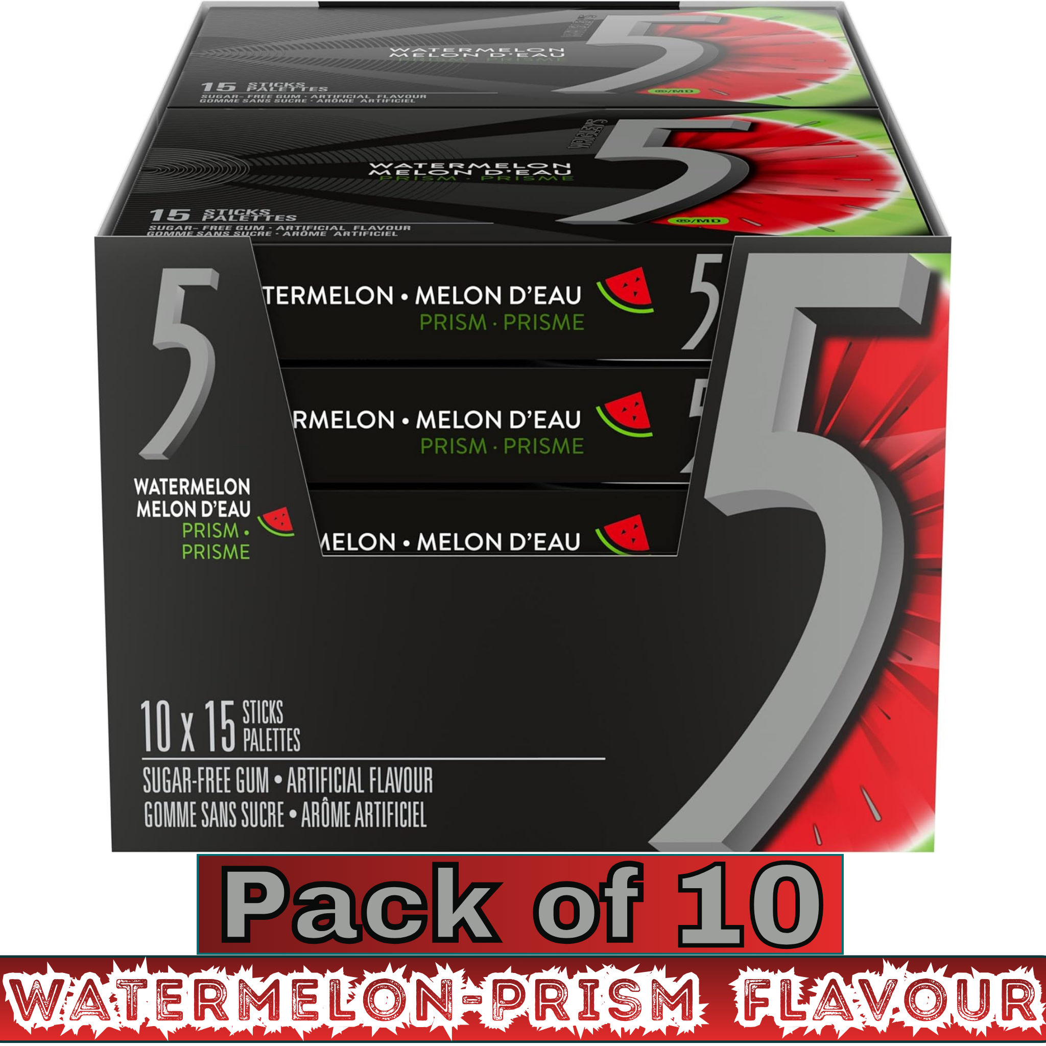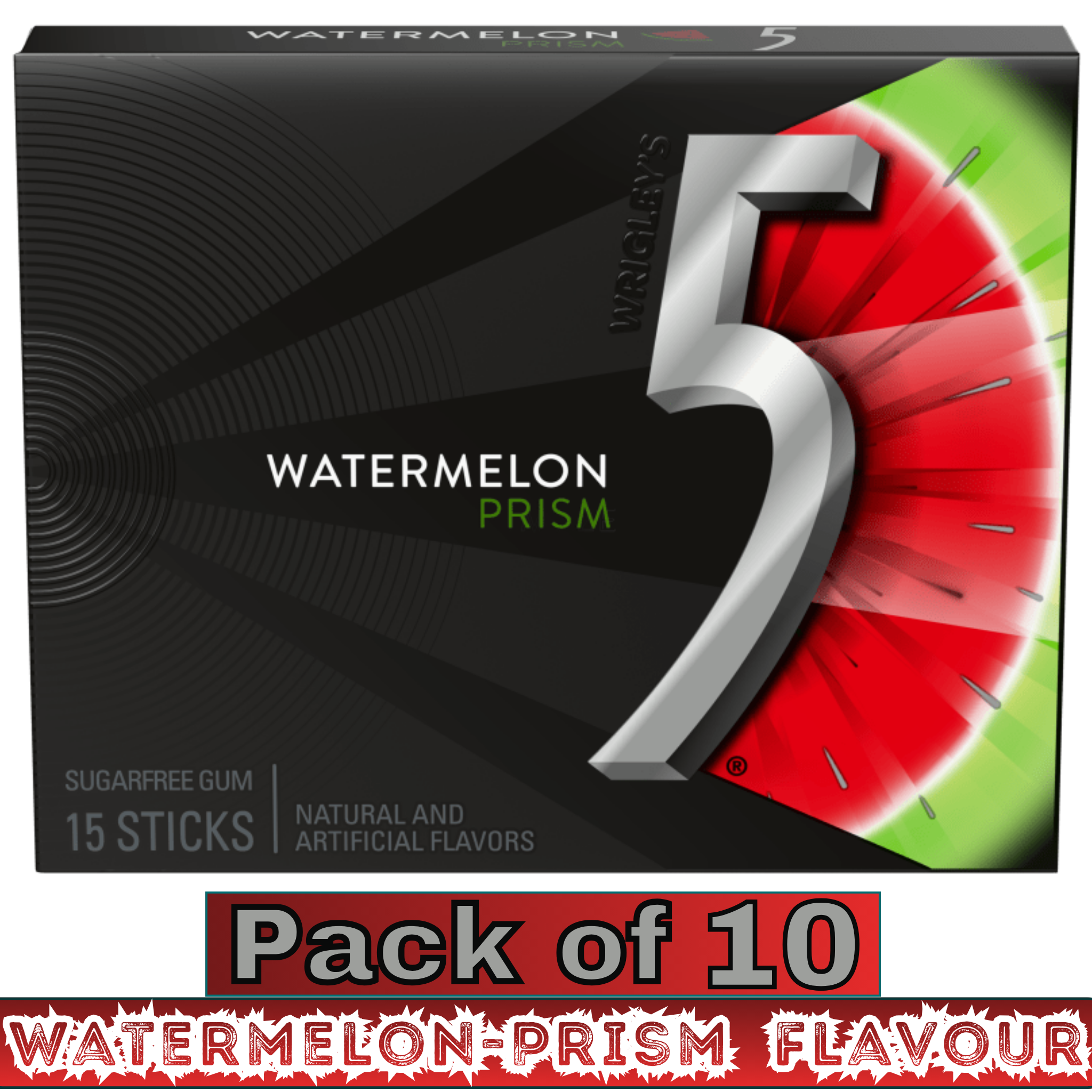 ❃ Product Name: 5 GUM Prism-Electric Watermelon Flavour Sugar-Free Chewing Gum – 15 Sticks – Pack of 10