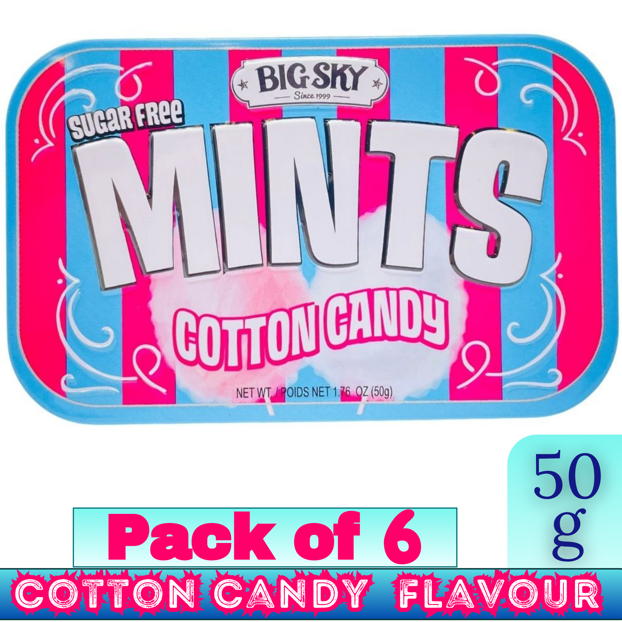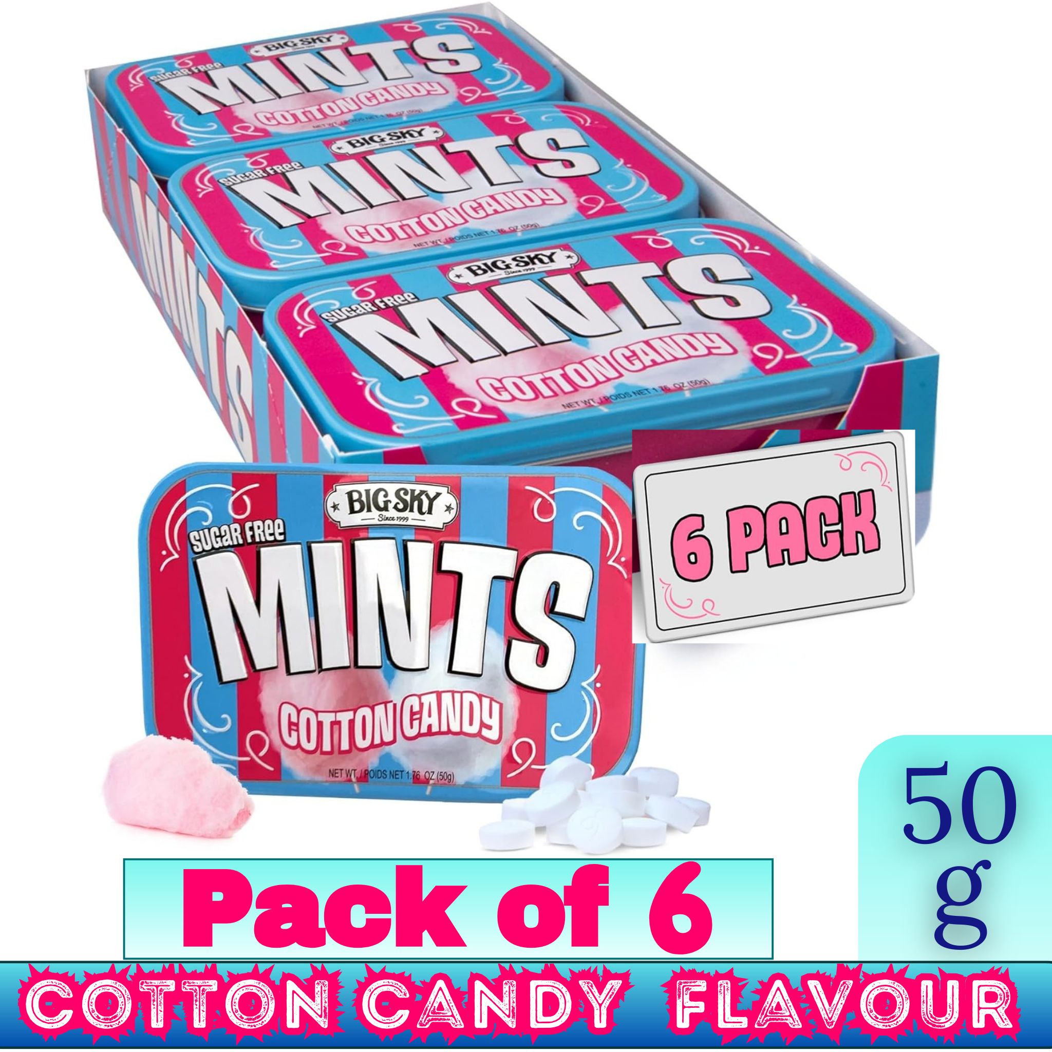 ❃ Product Name: Big Sky Sugar-Free Cotton Candy Mints – 50 g Retro Tin – Pack of 6
