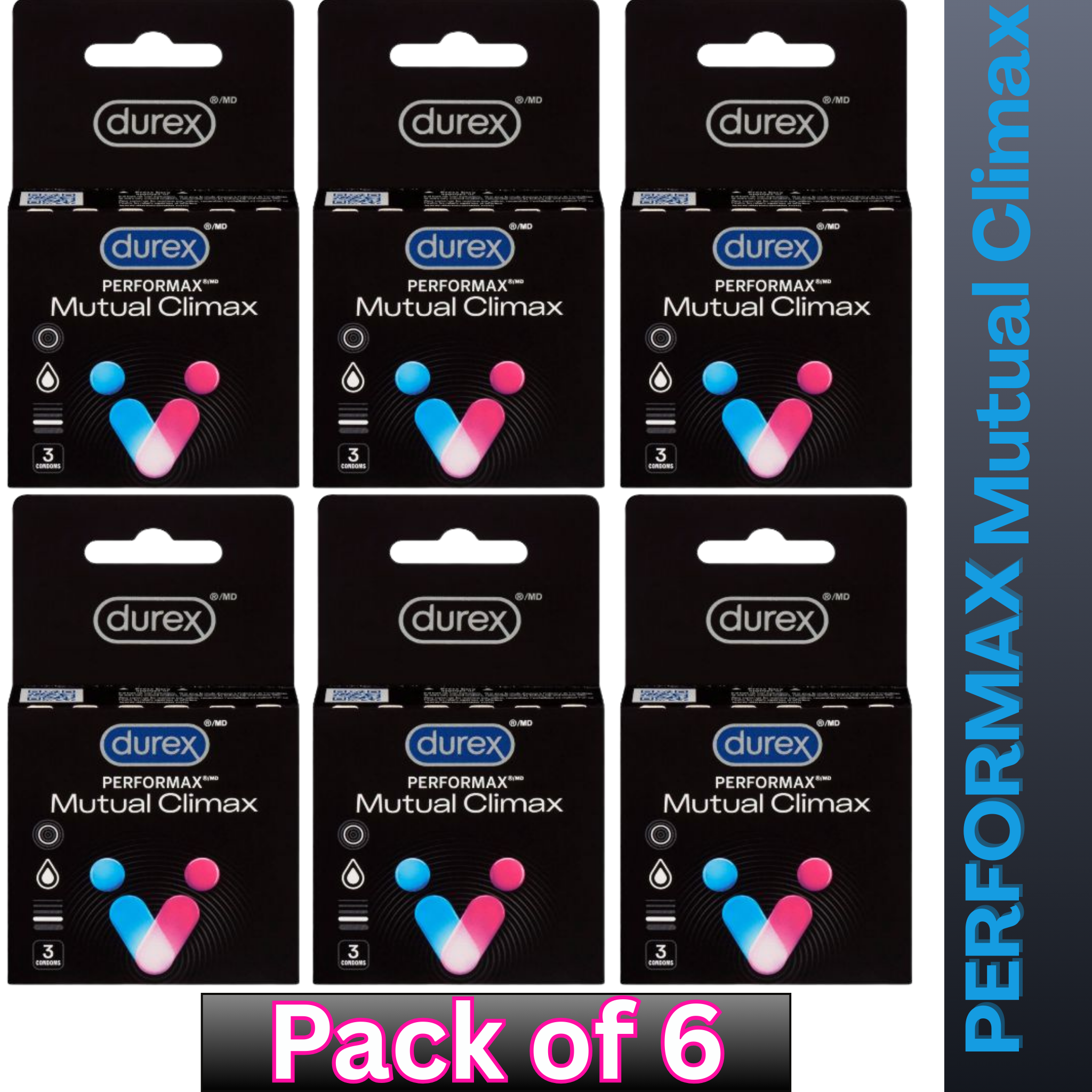 Take intimacy to the next level with Durex Performax Mutual Climax Condoms, expertly designed to help partners reach climax together. Each condom features a unique climax-control lubricant for him that helps delay ejaculation, while the ribbed and dotted texture for her heightens arousal and pleasure. Made with premium natural rubber latex, these condoms provide the perfect balance of protection, comfort, and passion. With smooth lubrication, reliable strength, and Durex’s trusted quality, they’re ideal for couples seeking both safety and unforgettable intimacy. 💕