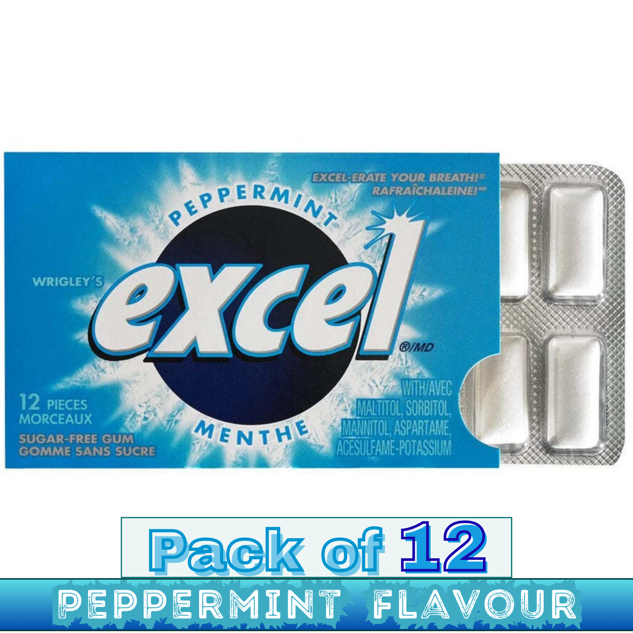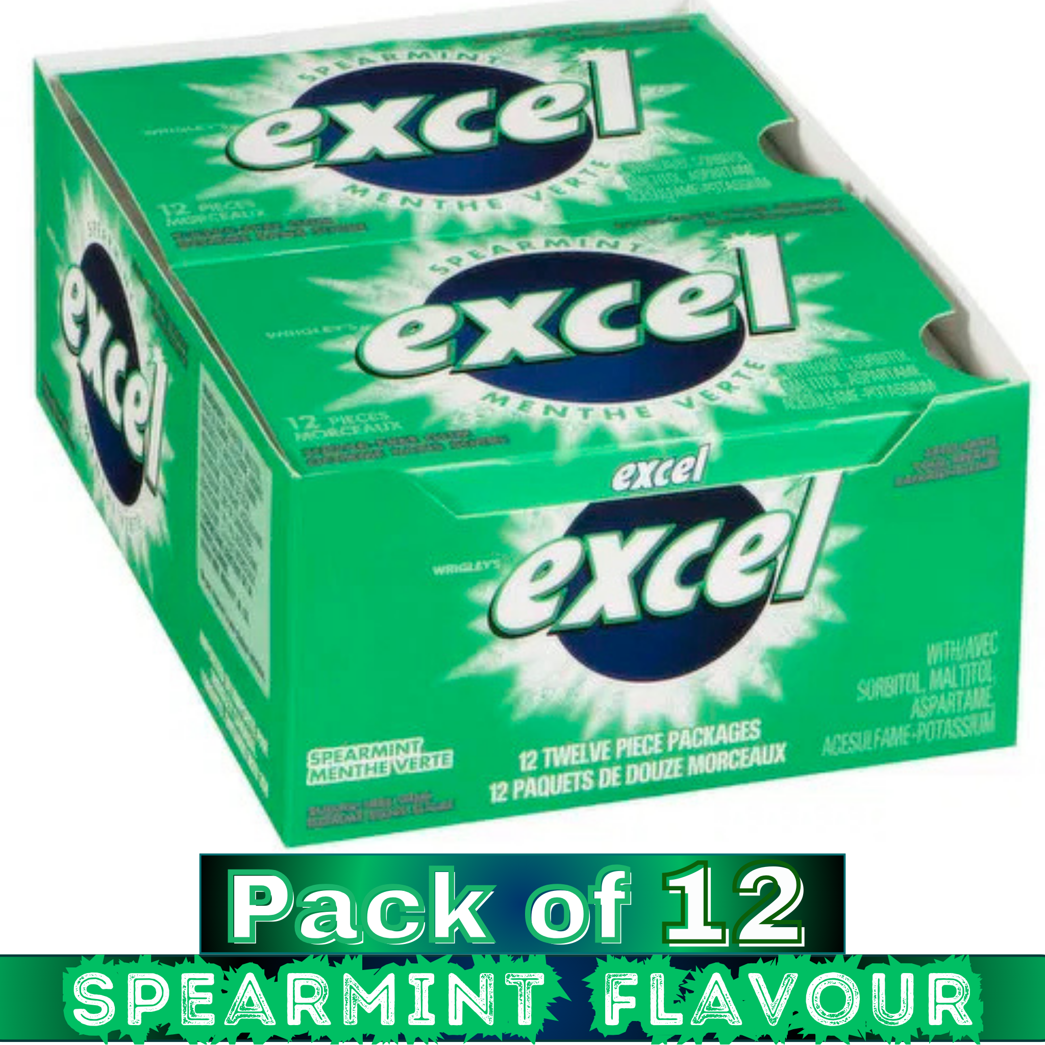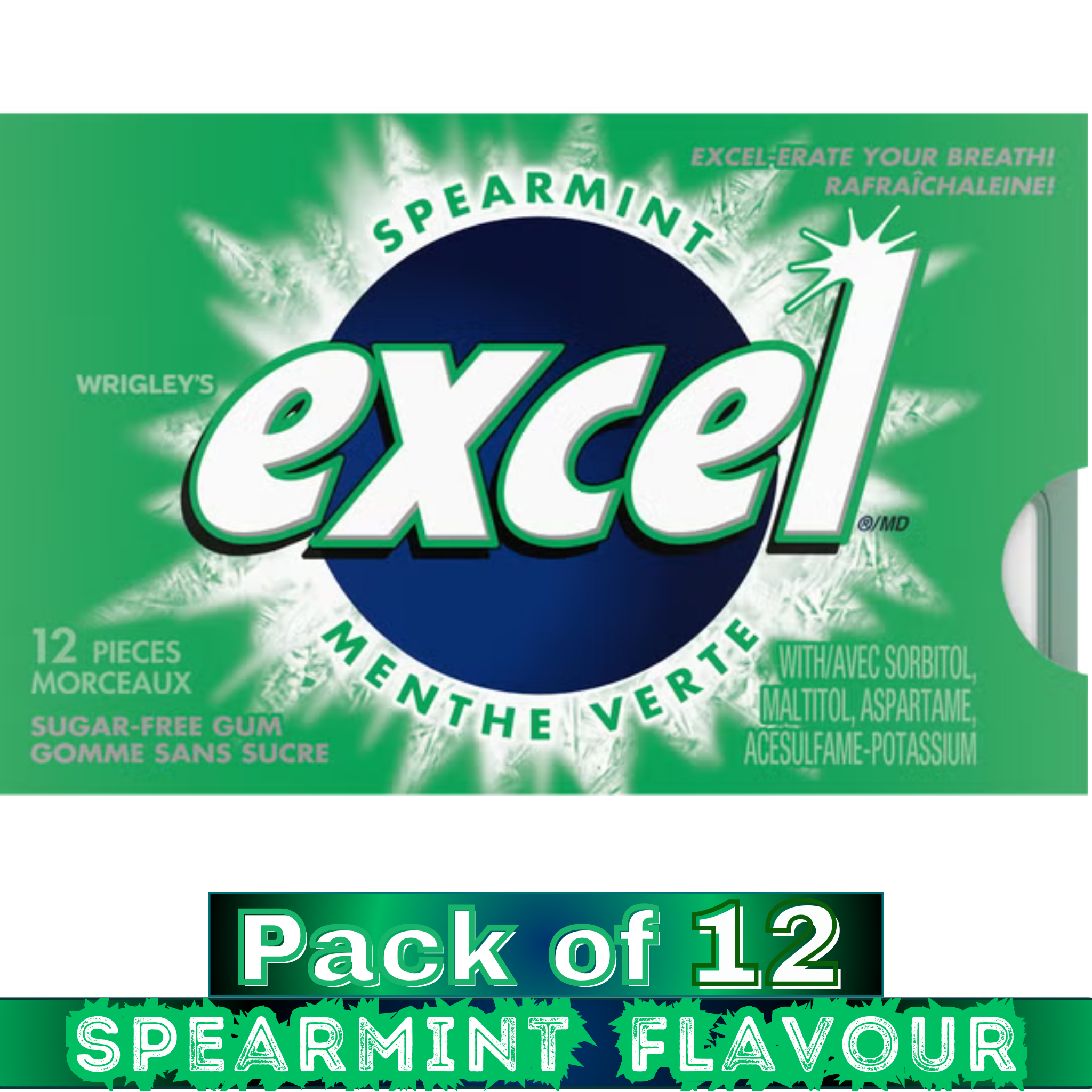❃ Product Name: EXCEL Spearmint Flavour Sugar-Free Chewing Gum – 12 Packs (12 Pieces Each)