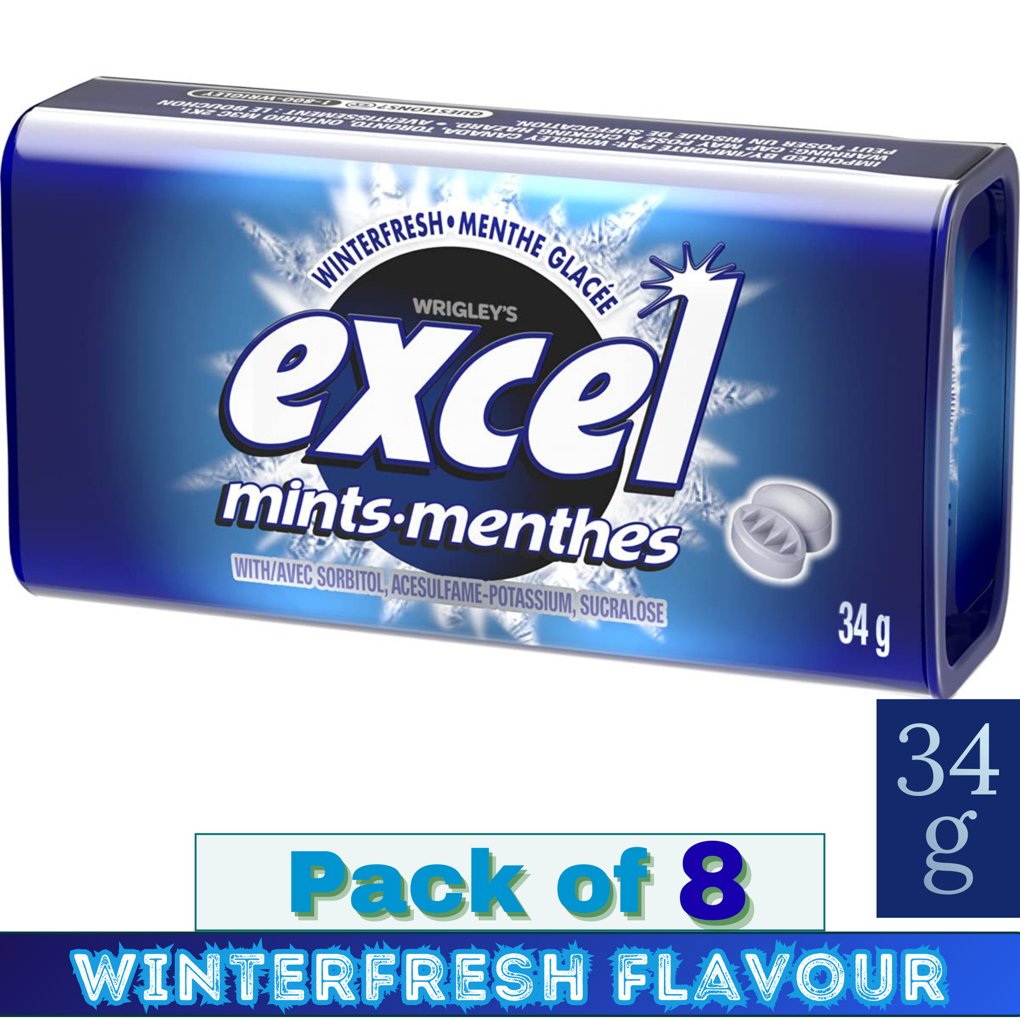 ❃ Product Name: EXCEL Winterfresh Flavour Mints – Sugar-Free Breath Mints – 34g – Pack of 8