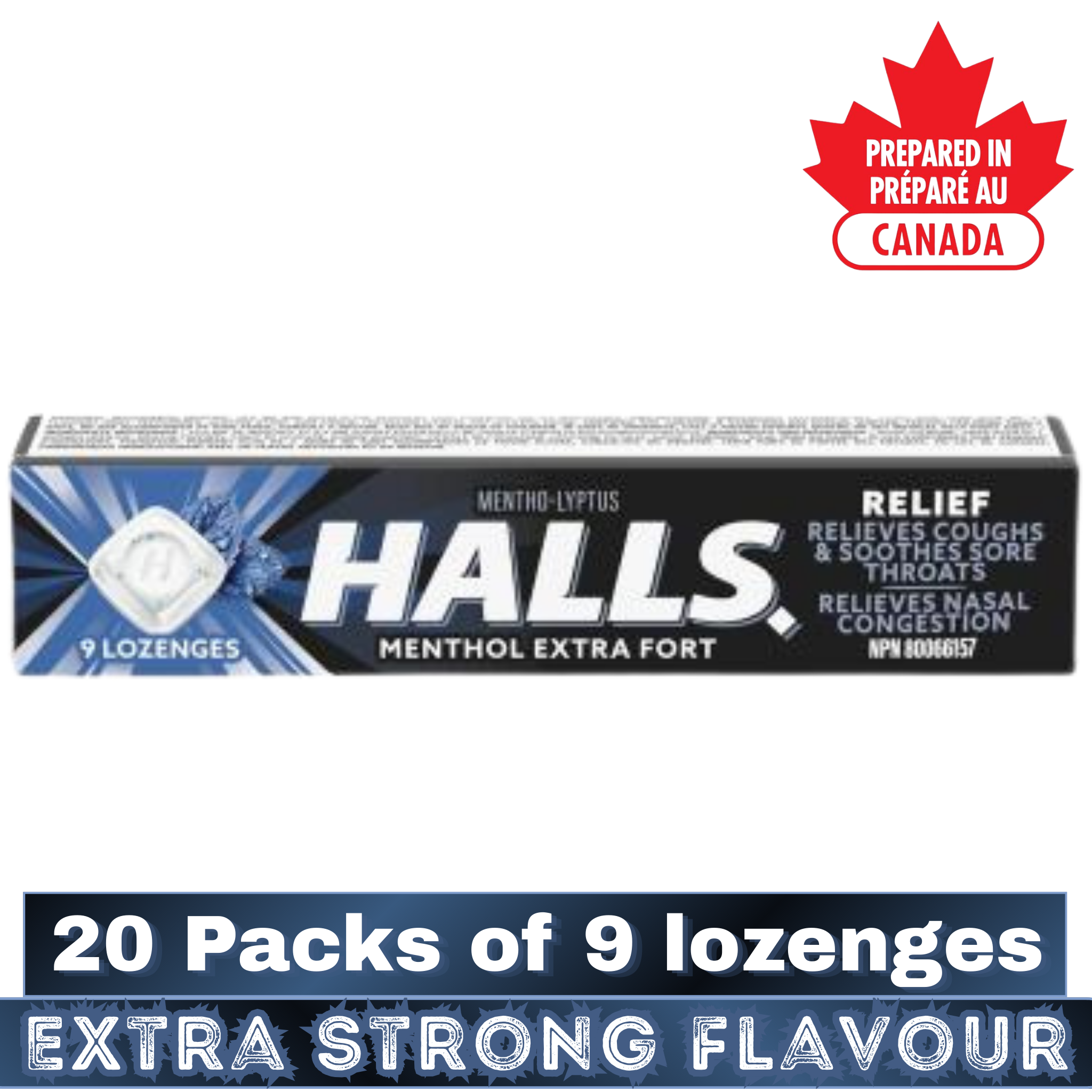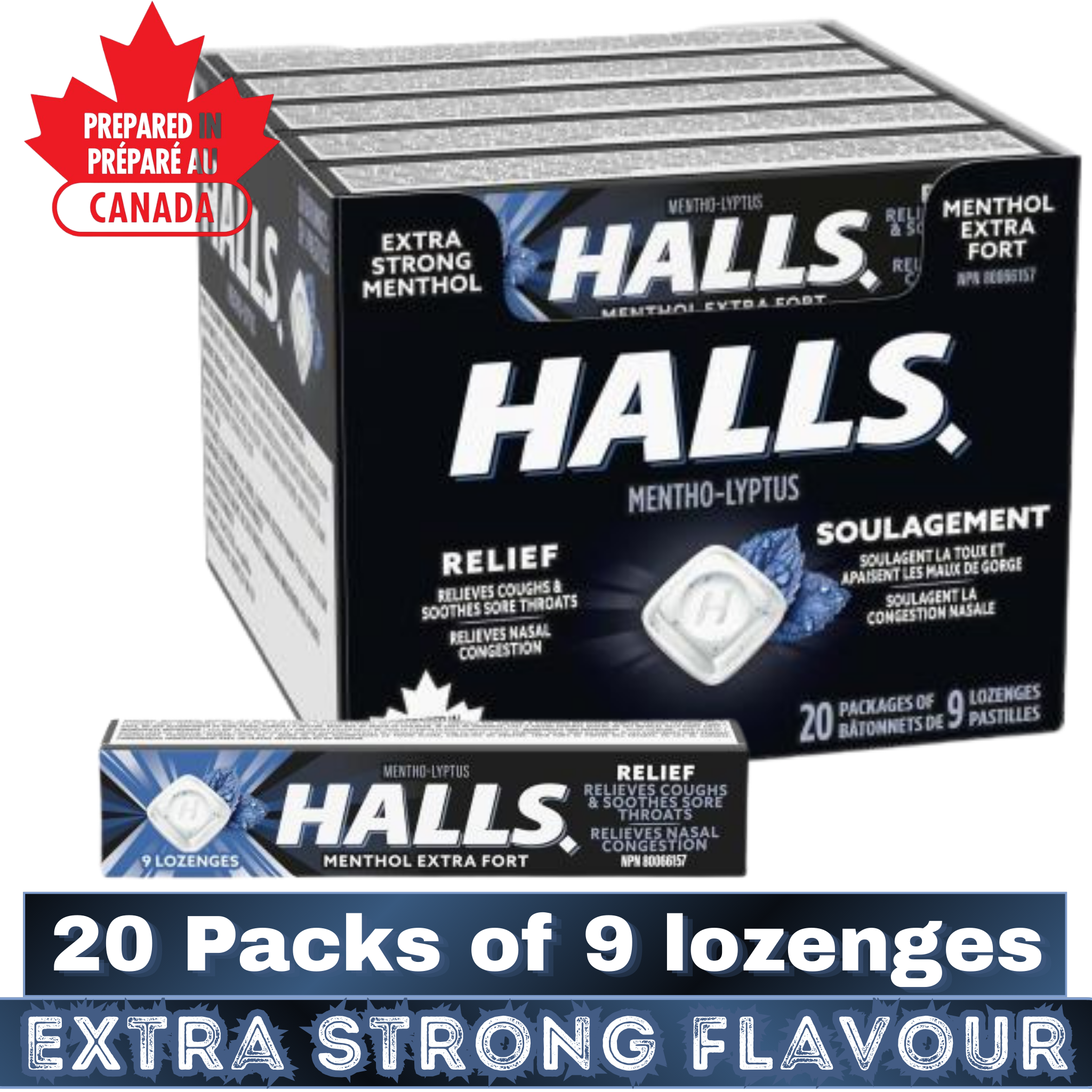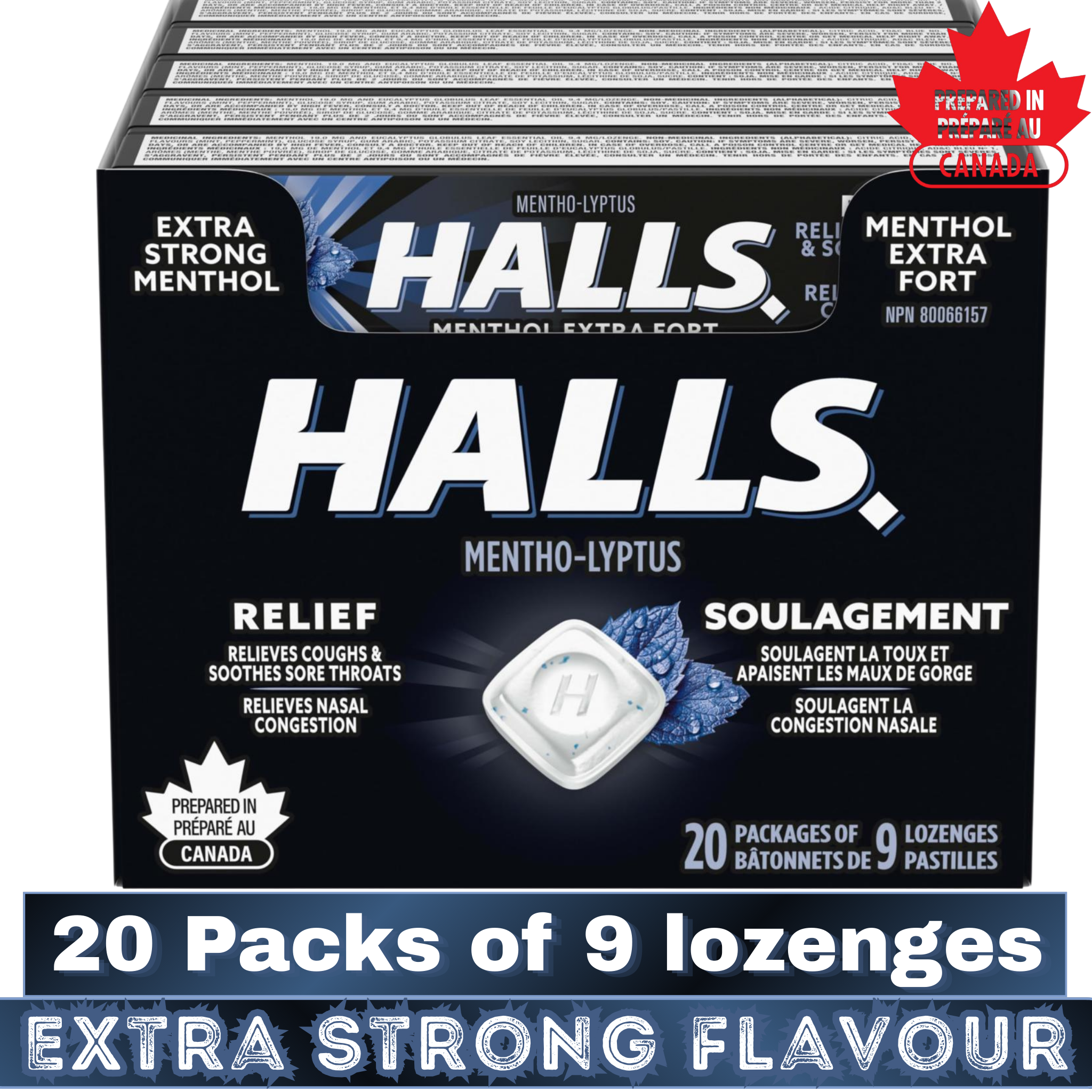 ❃ Product Name: HALLS Extra Strong Mentho-Lyptus Cough Drops – 20 Packs of 9 Lozenges – Throat & Cough Relief