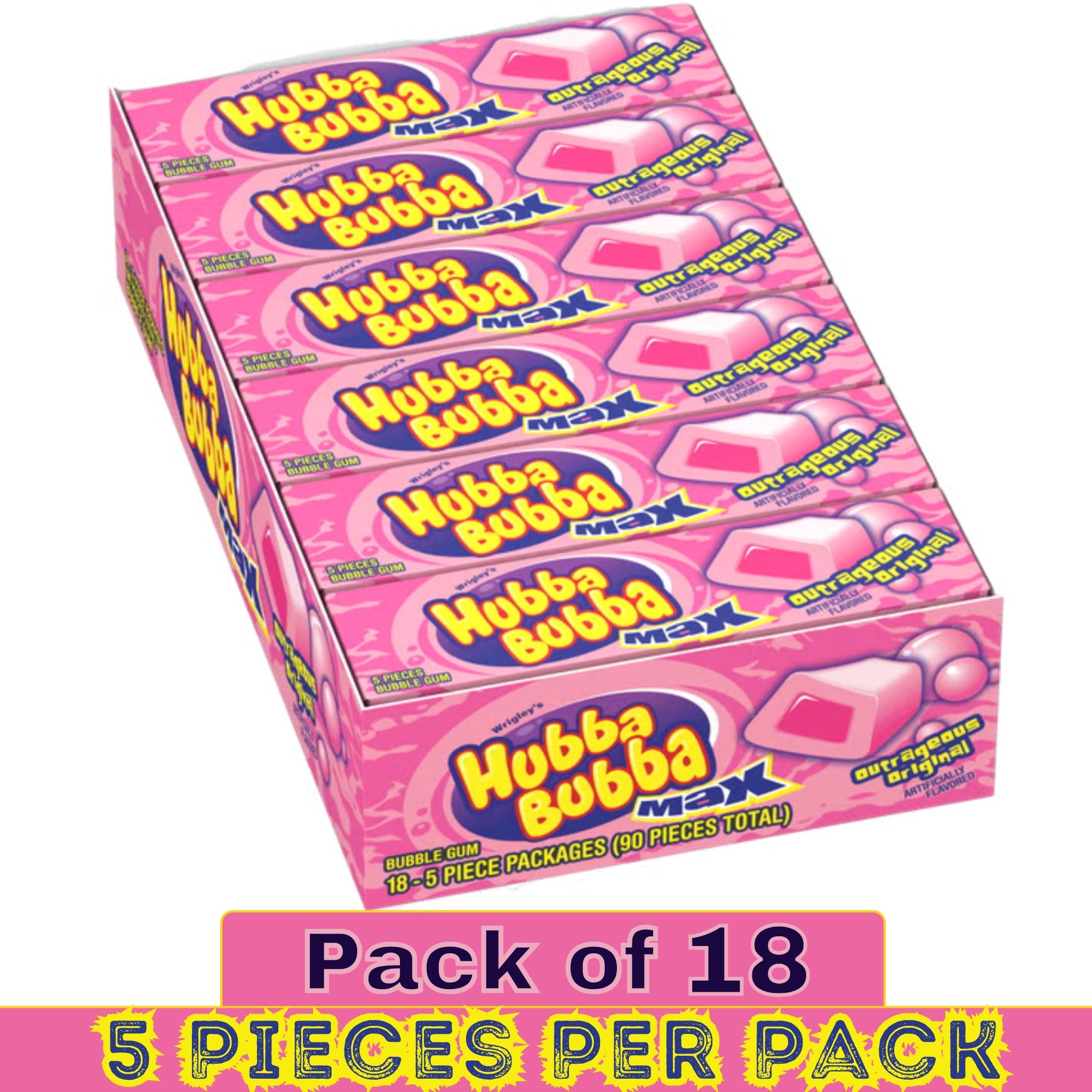 ❃ Product Name: Hubba Bubba Outrageous Original Flavoured Bubble Gum – 5 Pieces, 18 Packs