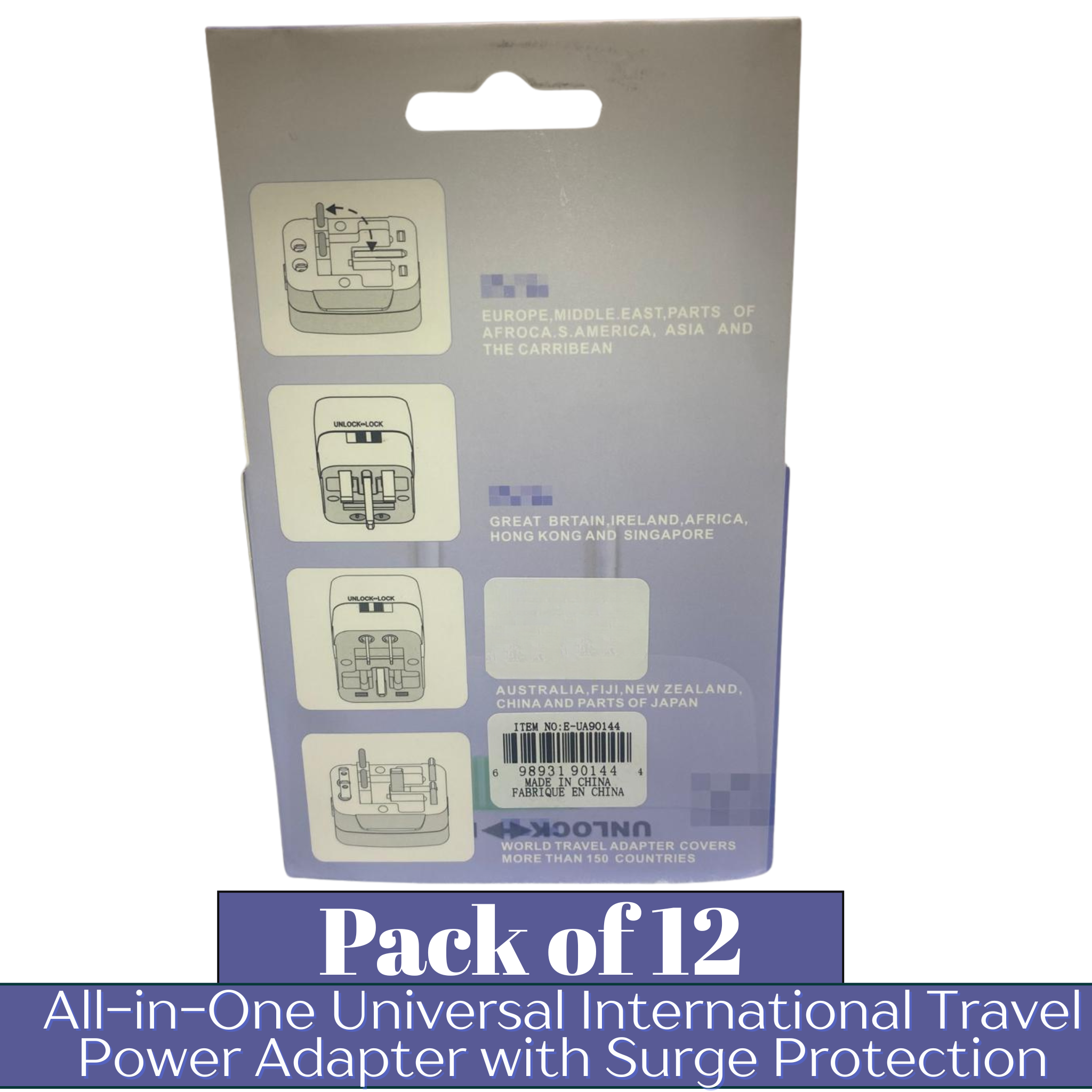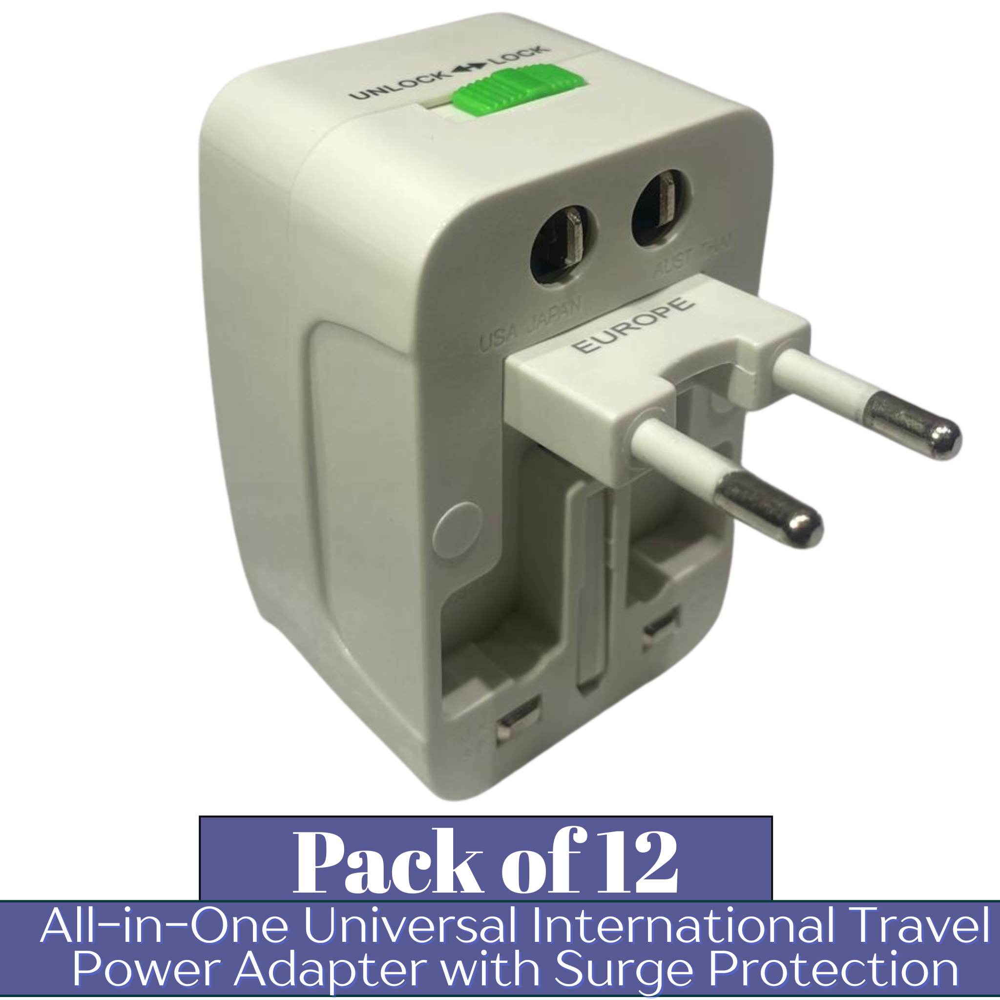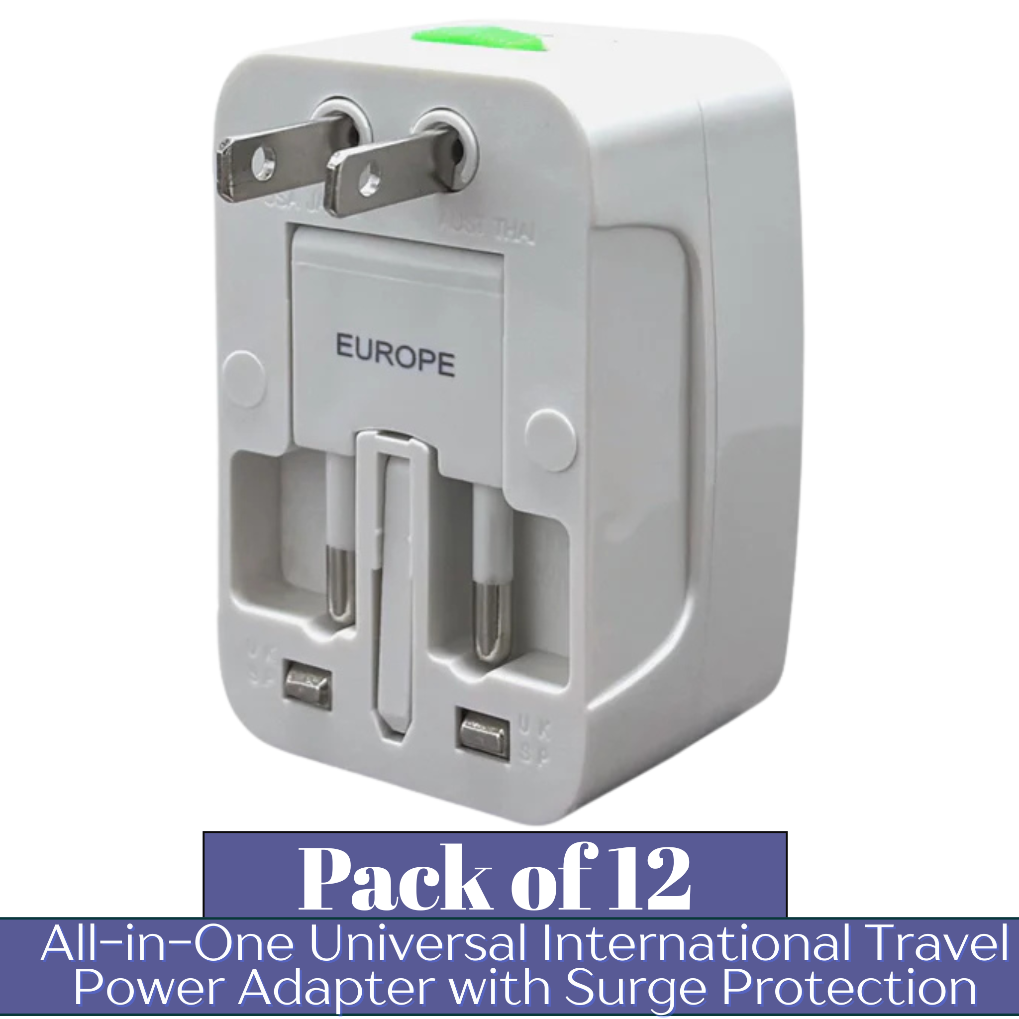 The INTERNATIONAL All-in-One Universal Travel Power Adapter is a reliable and compact power solution designed for global travelers and high-volume wholesale buyers. Engineered to work in 150+ countries worldwide, this adapter supports both earthed and unearthed plugs, making it suitable for smartphones, laptops, cameras, grooming tools, and other low-power electronics. Its integrated surge protection, built-in safety shutter, and power indicator light help protect valuable devices from voltage spikes while ensuring safe and confident usage during international travel. The all-in-one universal socket design eliminates the need for multiple adapters, while the compact form factor and included travel pouch make it easy to carry and retail-friendly. Supplied in a 12-piece wholesale pack, this adapter is a fast-moving essential for travel stores, electronics retailers, convenience shops, and bulk resale markets.