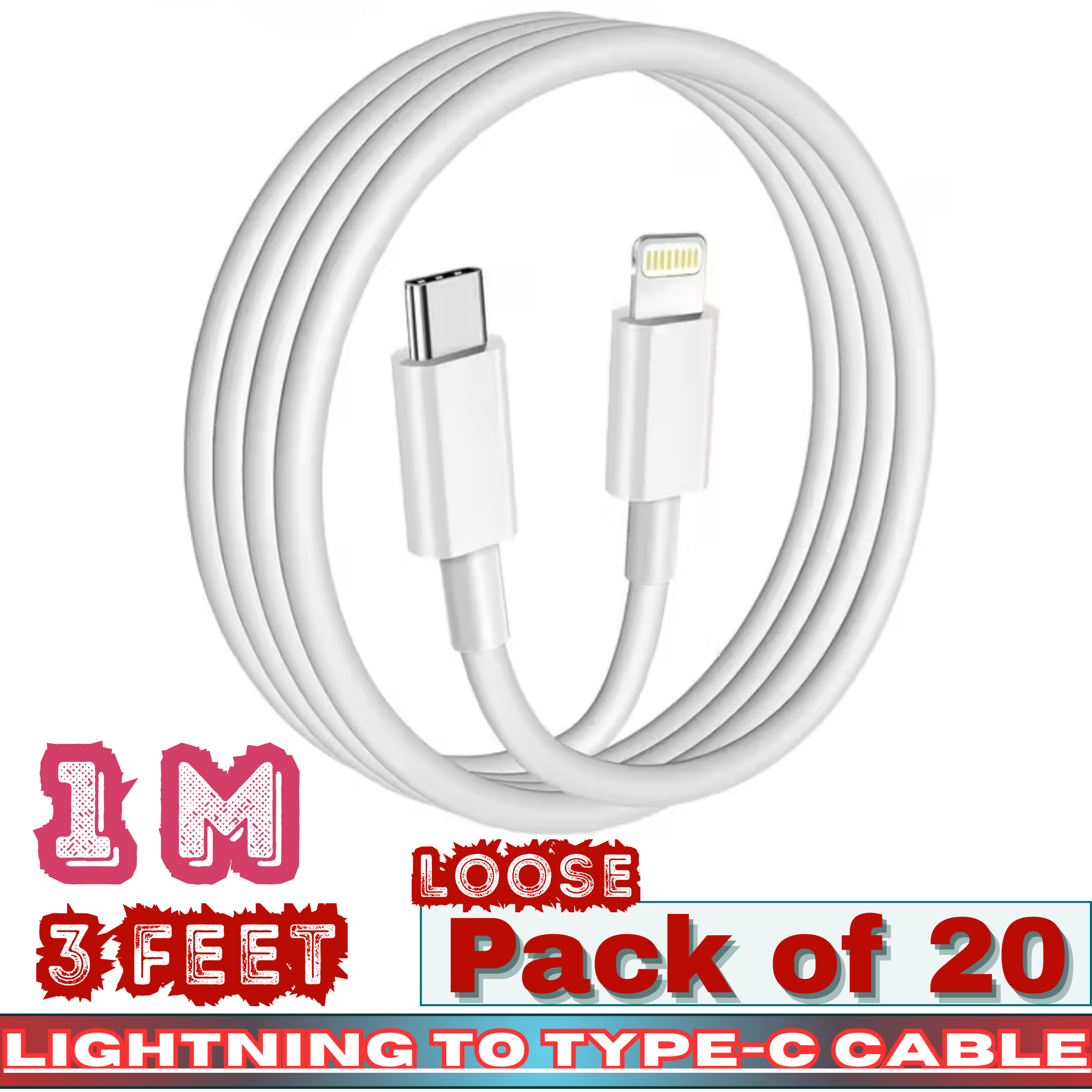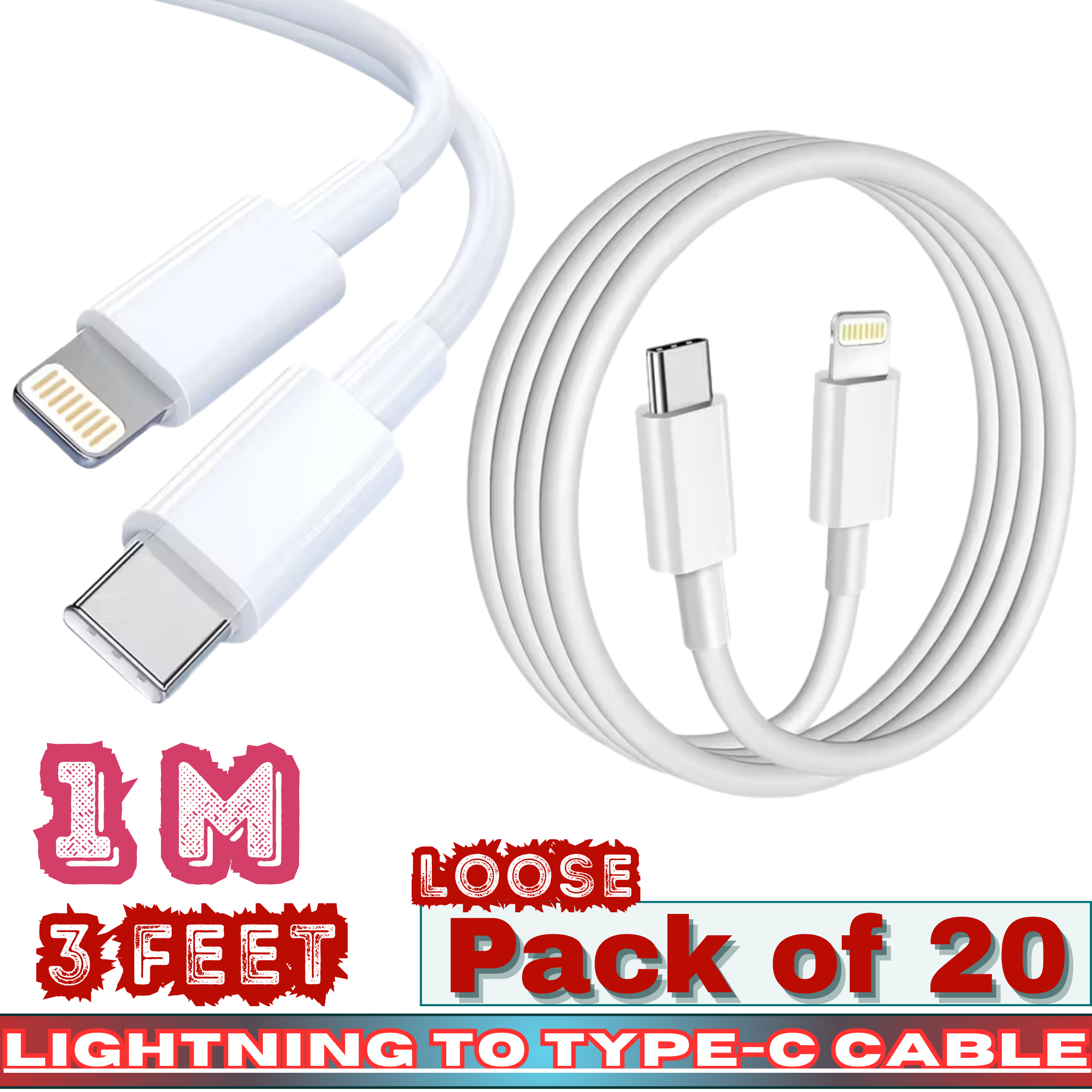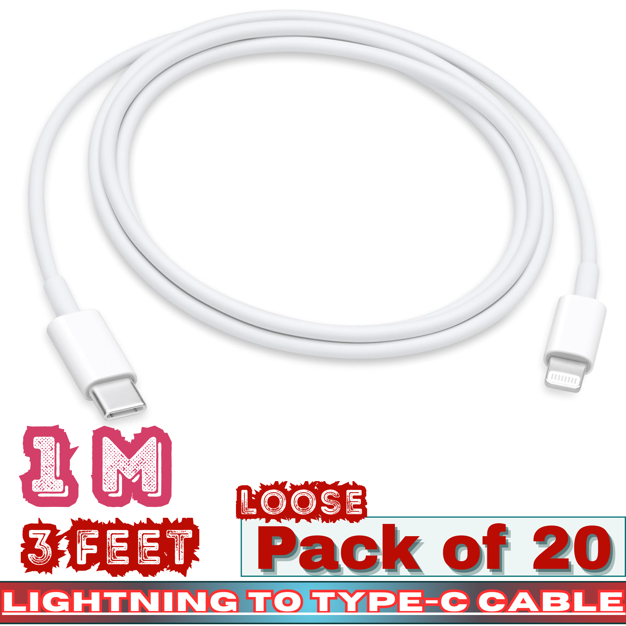 Wholesale buyers benefit from the loose pack of 20 units, allowing flexible resale, custom packaging, or bundle offers. With USB-C chargers becoming the industry standard, Lightning to USB-C cables continue to see strong repeat demand across convenience stores, mobile accessory shops, gas stations, and electronics retailers.