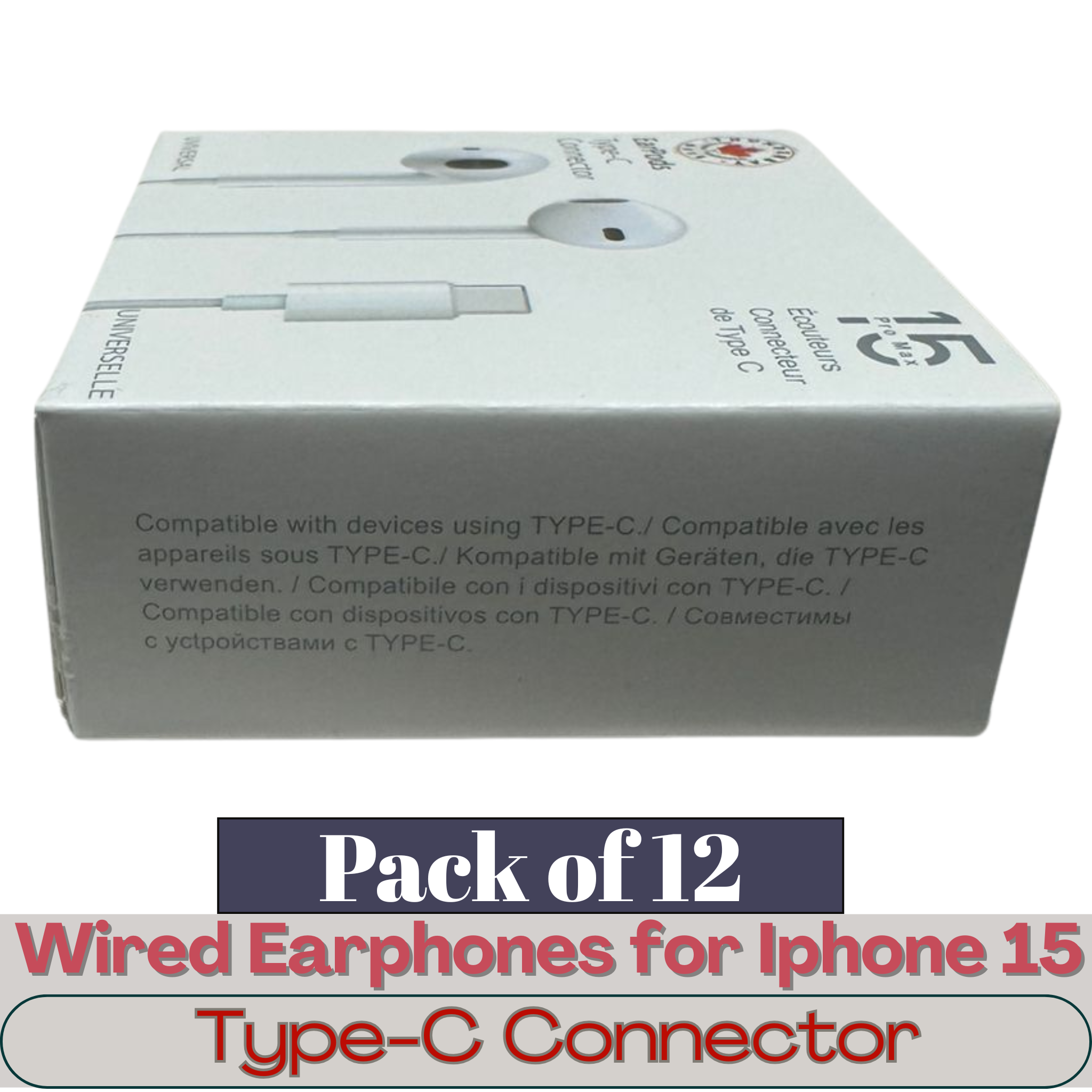 The THUNDERBAY EarPods with Type-C Connector (12 Packs) are designed for modern smartphones that use a USB-C (Type-C) port, including the iPhone 15 series. These wired EarPods provide a simple, reliable, and adapter-free audio solution, making them ideal for daily use, retail resale, and wholesale distribution.