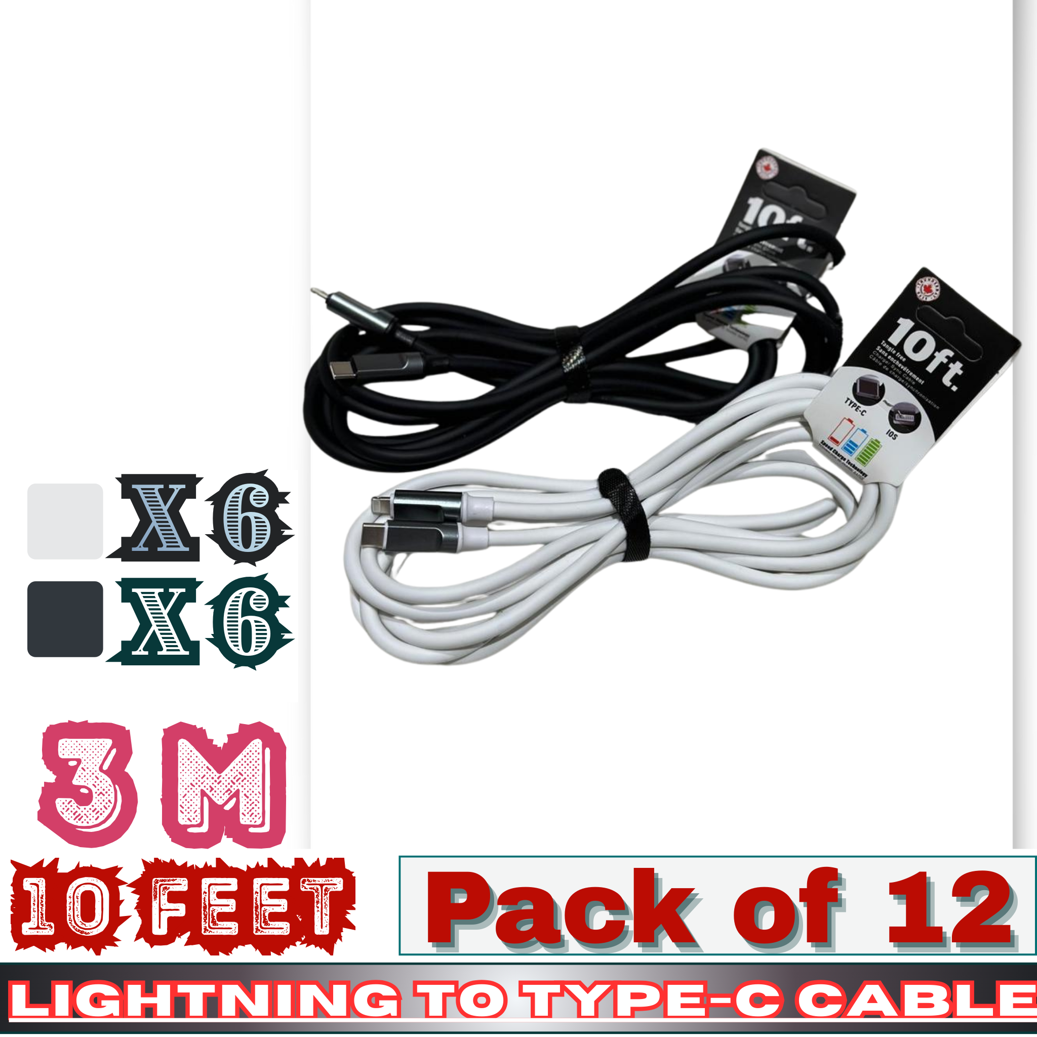 Each bulk pack includes 12 cables (6 black + 6 white), offering flexibility for merchandising, color preference, and inventory rotation. Ideal for high-traffic retail environments, this is the type of everyday essential customers don’t hesitate to buy — and often come back for again.