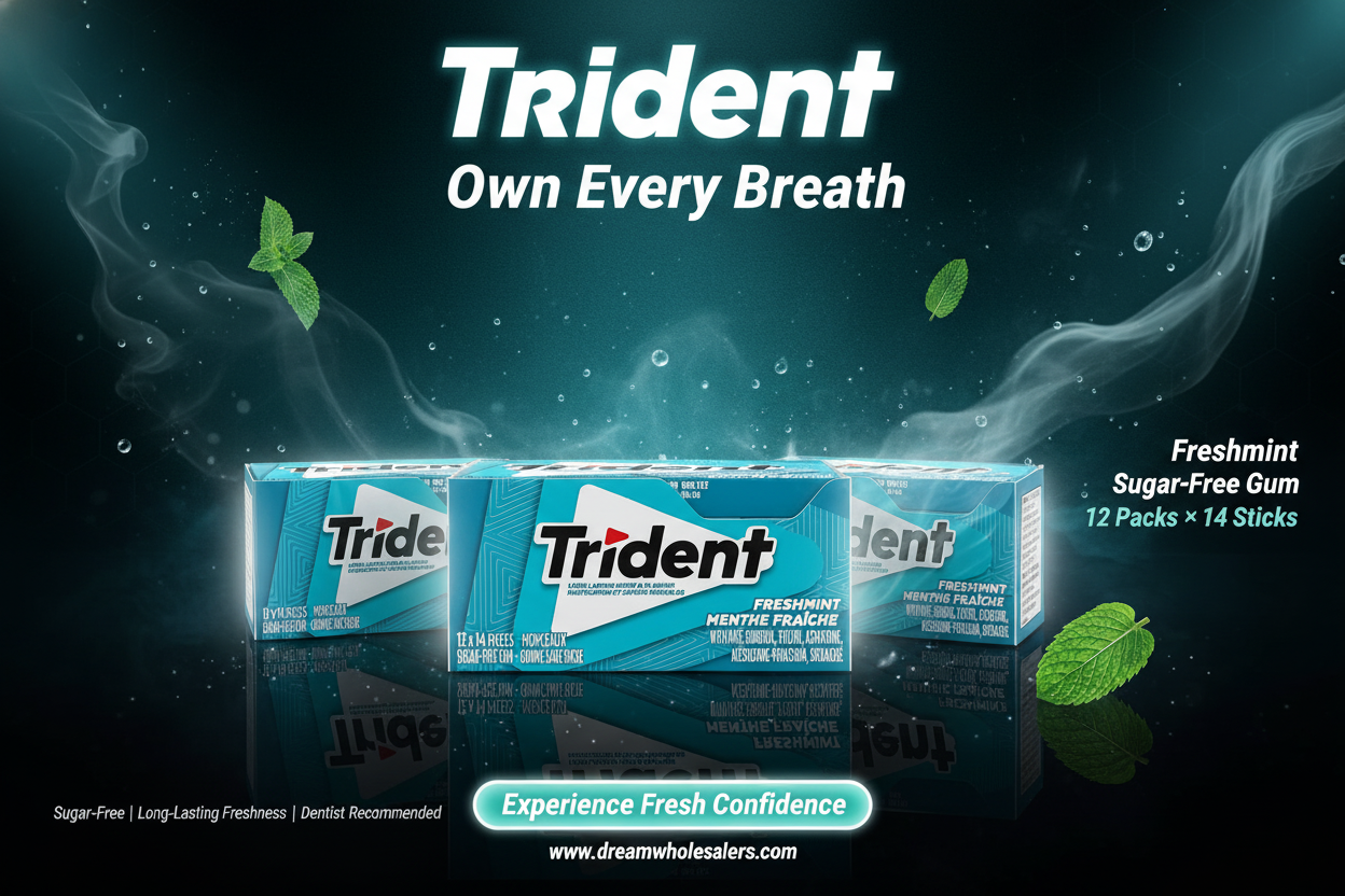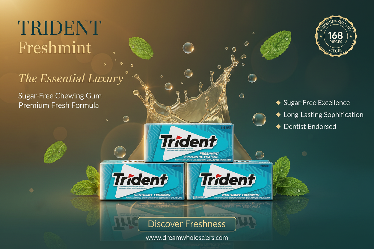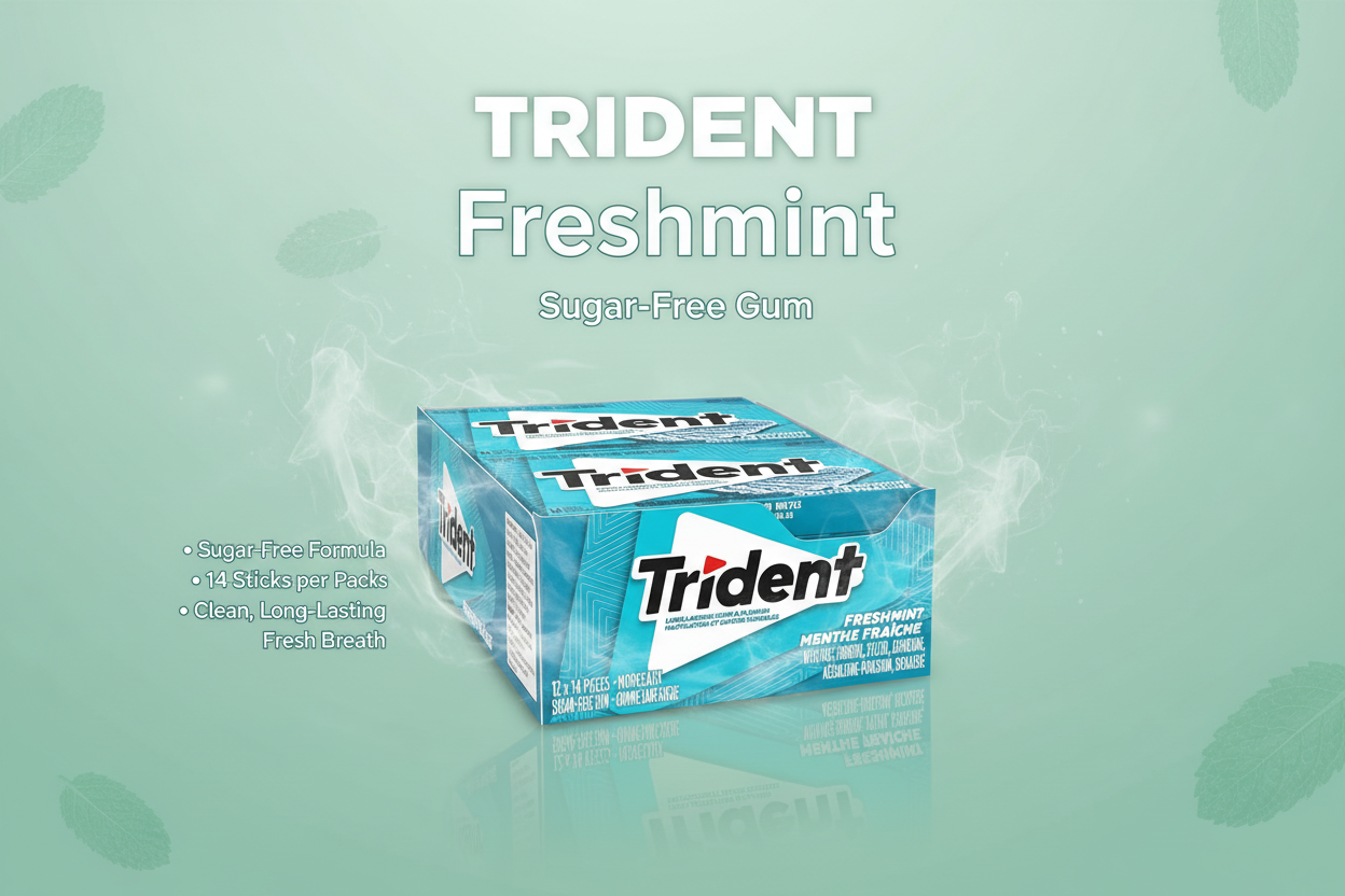 Trident FreshMint Sugar-Free Chewing Gum is a proven fast-moving breath freshening solution trusted by retailers worldwide. Designed for consistent daily demand, this premium sugar-free chewing gum delivers long-lasting mint freshness while supporting oral care, making it a reliable and profitable product for wholesale buyers.