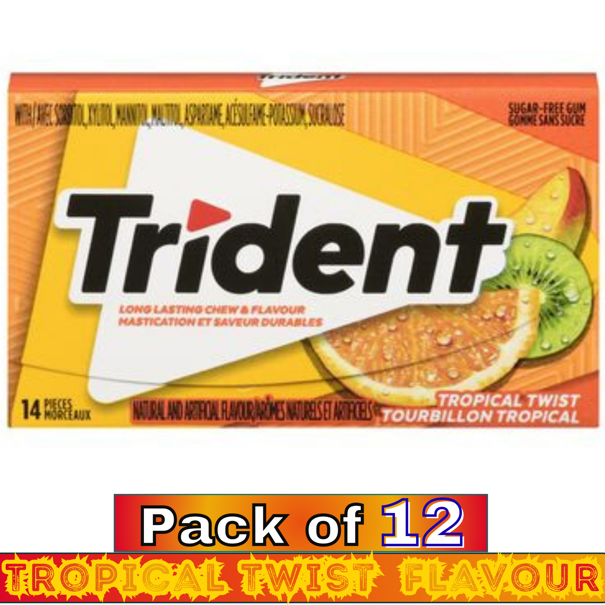 ❃ Product Name: Trident Tropical Twist Sugar-Free Chewing Gum – 14 Pieces – Box of 12