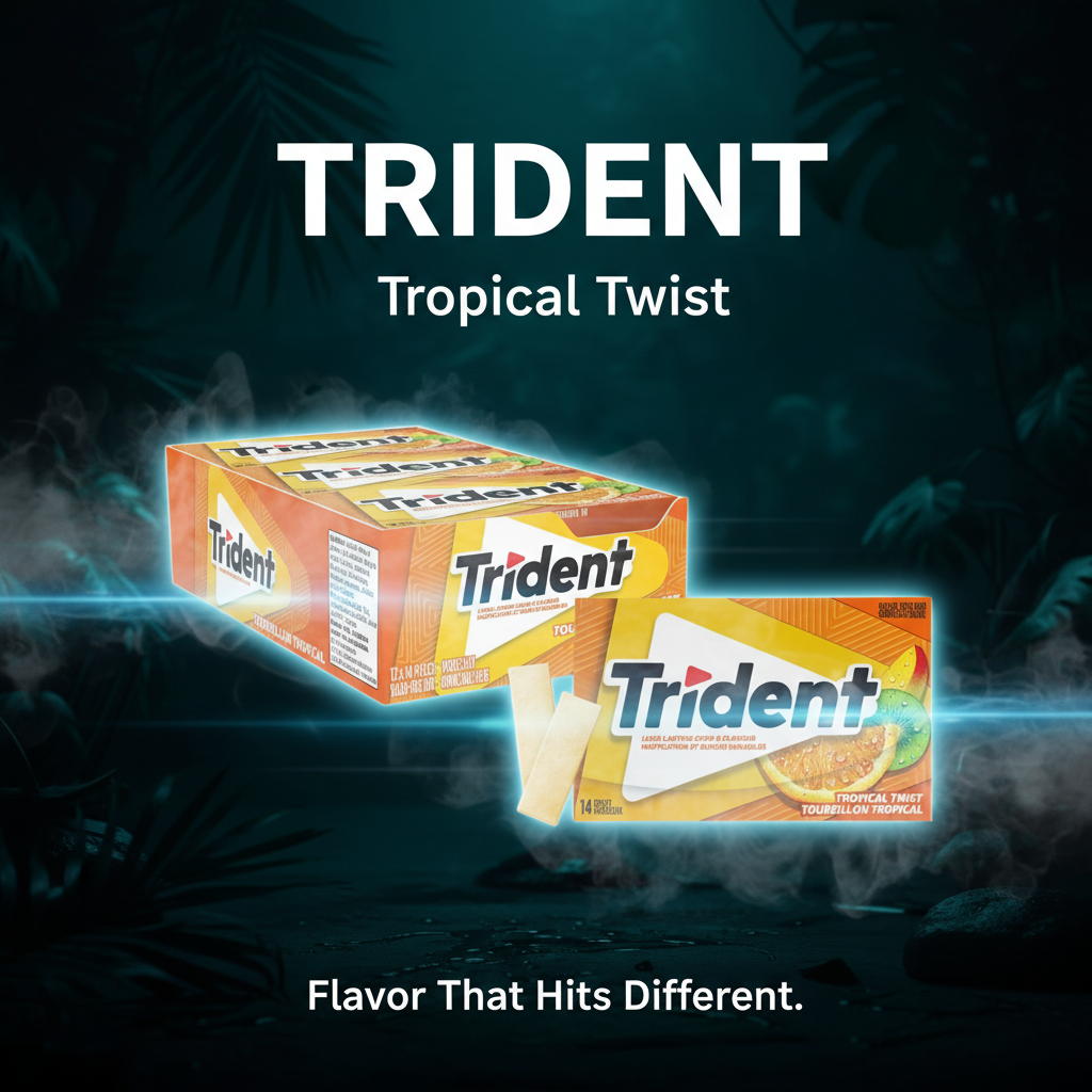 Trident Tropical Twist Sugar-Free Chewing Gum is a high-demand, fast-moving confectionery product trusted by retailers across North America for consistent repeat sales and strong shelf performance. Crafted by Trident, this tropical fruit-flavored sugar-free gum delivers a refreshing, long-lasting taste that appeals to a wide customer base, making it a reliable profit driver for convenience-focused retail environments.