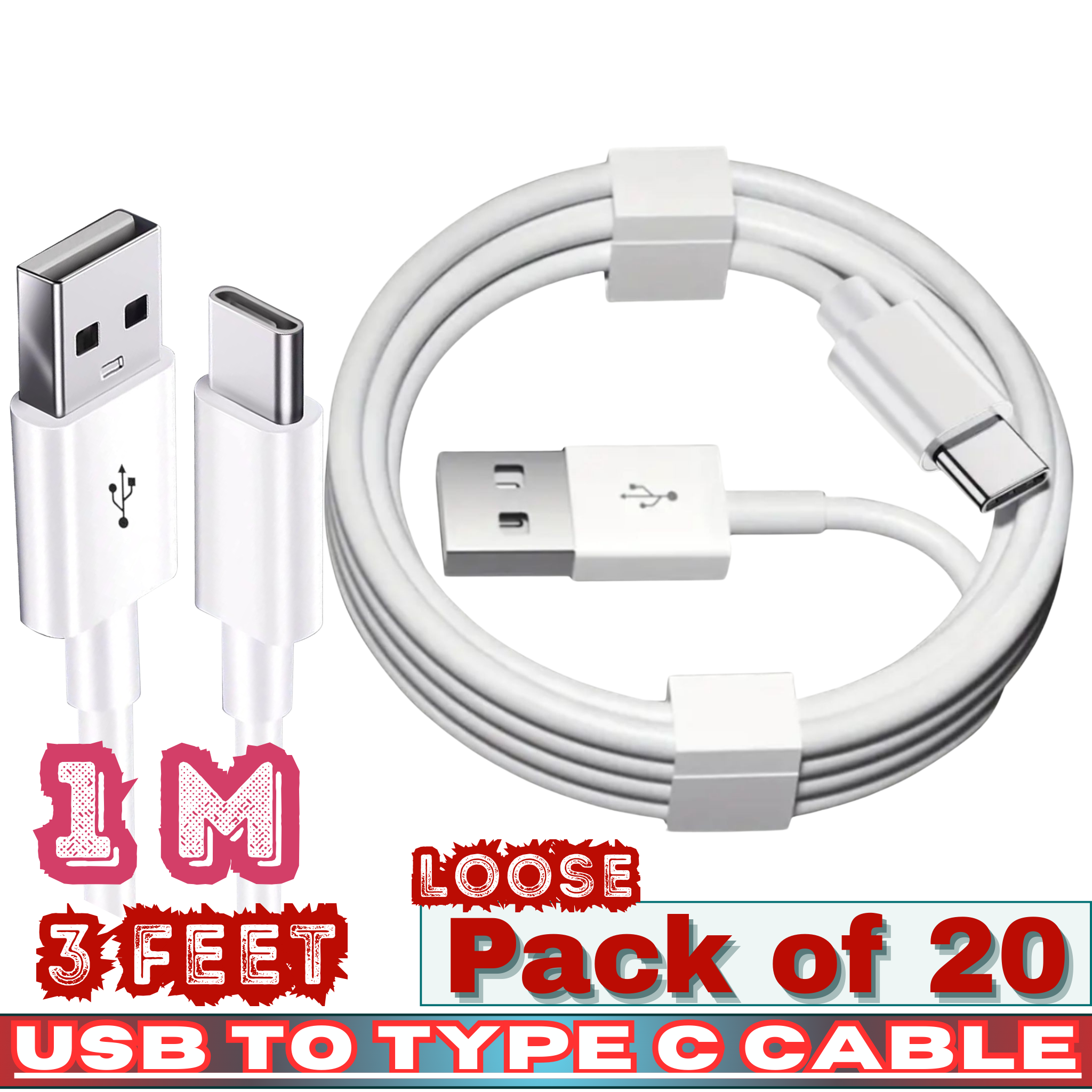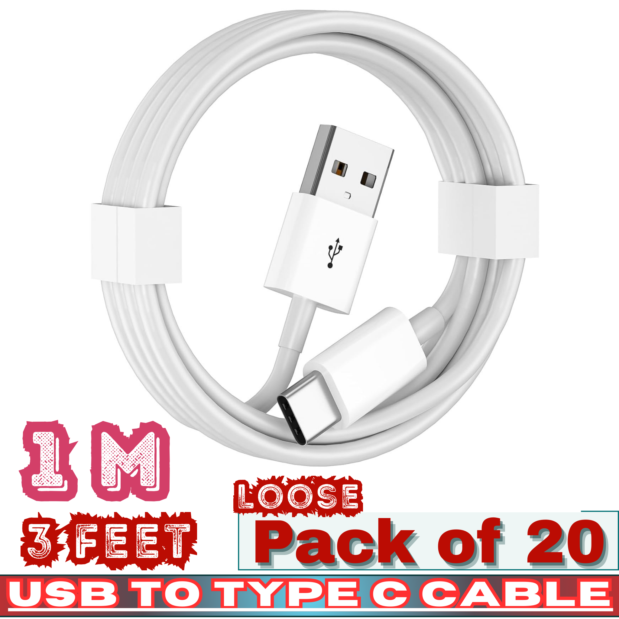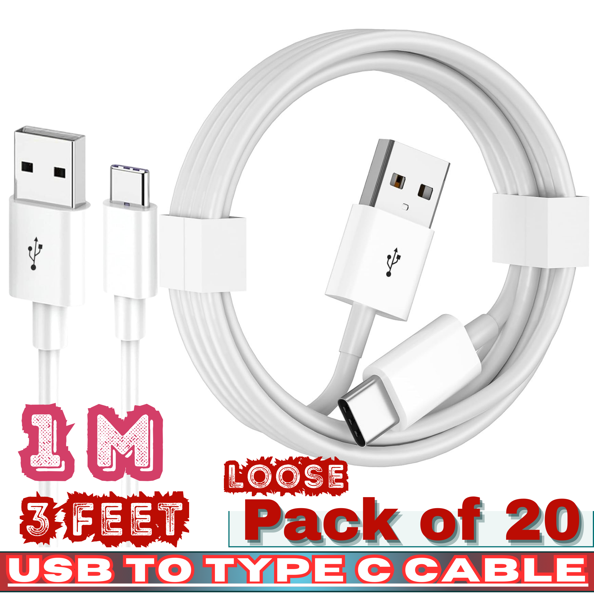 ❃ Product Name: USB to Type-C Charging Cable – 3FT (1M) – Loose Pack of 20
